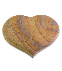 Hochwertig gefertigter Grabstein im Design "Coeur" aus Naturstein Rainbow inkl. persönlicher Inschrift in hochwertiger Sandstrahlgravur.