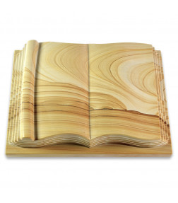 Hochwertig gefertigtes Grabbuch (Grabstein in Buchform) im Design "Antique" aus Naturstein Woodland inkl. persönlicher Inschrift (1x Vorname, 1x Nachname, 1x Datum - max. 40 Zeichen) in hochwertiger Sandstrahlgravur.