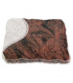 Hochwertig gefertigte Grabplatte im Design "Folio" aus Naturstein Aruba inkl. persönlicher Inschrift in hochwertiger Sandstrahlgravur. Wahlweise mit Metall-Ornament.