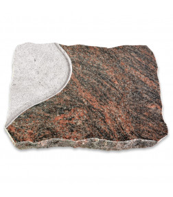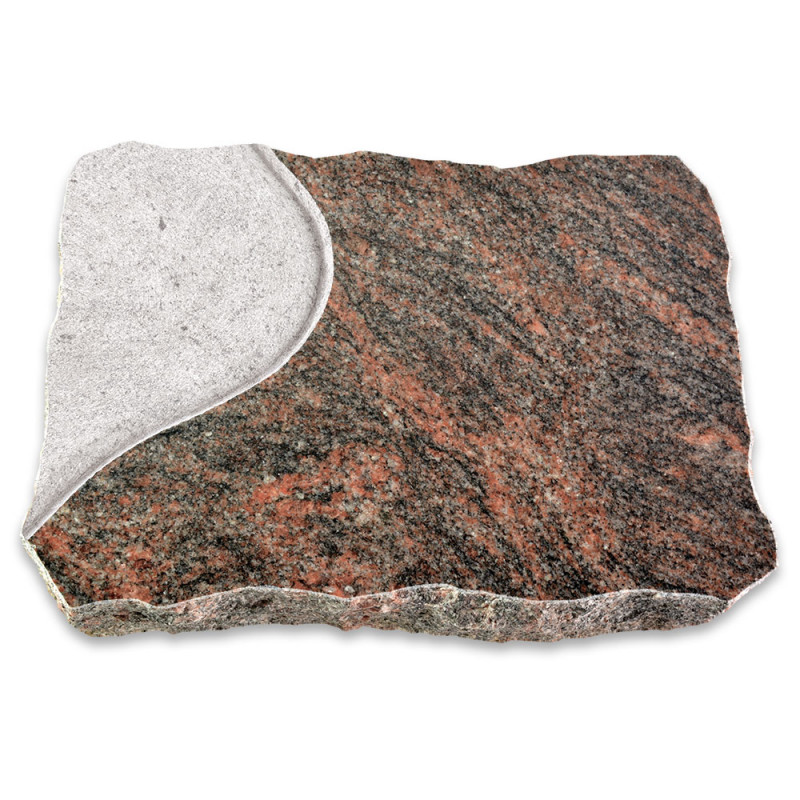Hochwertig gefertigte Grabplatte im Design "Folio" aus Naturstein Himalaya inkl. persönlicher Inschrift in hochwertiger Sandstrahlgravur. Wahlweise mit Metall-Ornament.