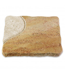 Hochwertig gefertigte Grabplatte im Design "Folio" aus Naturstein Kashmir inkl. persönlicher Inschrift in hochwertiger Sandstrahlgravur. Wahlweise mit Metall-Ornament.