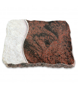 Hochwertig gefertigte Grabplatte im Design "Wave" aus Naturstein Aruba inkl. persönlicher Inschrift in hochwertiger Sandstrahlgravur. Wahlweise mit Metall-Ornament.