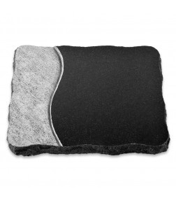 Hochwertig gefertigte Grabplatte im Design "Wave" aus Naturstein Indisch Black inkl. persönlicher Inschrift in hochwertiger Sandstrahlgravur. Wahlweise mit Metall-Ornament.