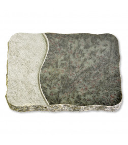 Hochwertig gefertigte Grabplatte im Design "Wave" aus Naturstein Tropical-Green inkl. persönlicher Inschrift in hochwertiger Sandstrahlgravur. Wahlweise mit Metall-Ornament.