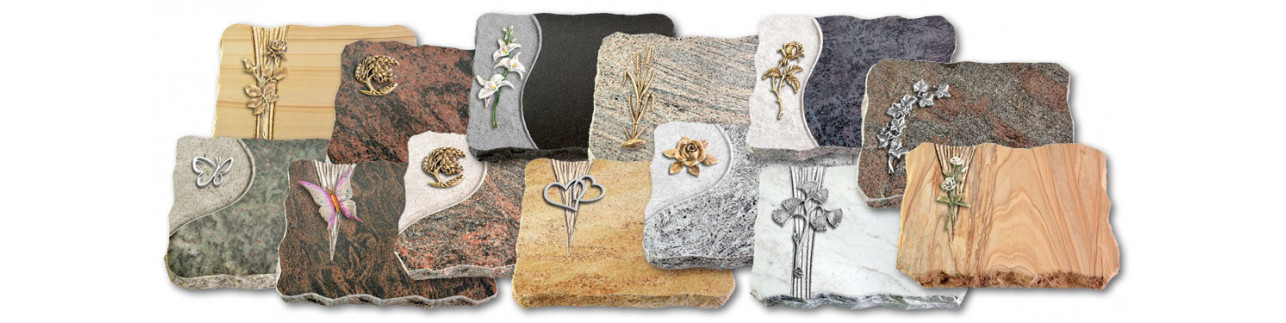 Allen gemeinsam ist die perfekte, CNC-gesteuerte Oberflächenverarbeitung. Die Kanten sind "gebrochen" und ungeschliffen. Grabplatten können auf bestehenden Grababdeckungen oder -flächen bei Urnen-, Einzel- oder Familiengräber gelegt, bzw. in die Erde gebettet werden. Material, Verarbeitung und Beschriftung (Beschriftungsfarben: Schwarz, Hellgrau, Braun, Silber, Gold) sind absolut frostsicher und nach korrekter Anwendung (siehe FAQ) sehr lange haltbar.