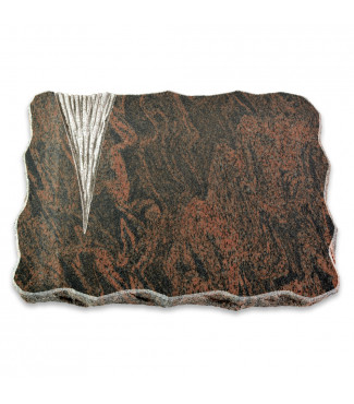 Hochwertig gefertigte Grabplatte im Design "Delta" aus Naturstein Rainbow inkl. persönlicher Inschrift in hochwertiger Sandstrahlgravur. Wahlweise mit Metall-Ornament.
