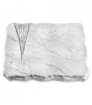 Hochwertig gefertigte Grabplatte im Design "Delta" aus Naturstein Omega Marmor inkl. persönlicher Inschrift in hochwertiger Sandstrahlgravur. Wahlweise mit Metall-Ornament.