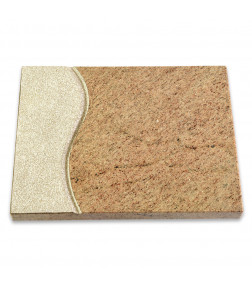 Hochwertig gefertigte Grabtafel im Design "Wave" aus Naturstein Kashmir inkl. persönlicher Inschrift in hochwertiger Sandstrahlgravur. Wahlweise mit Metall-Ornament.